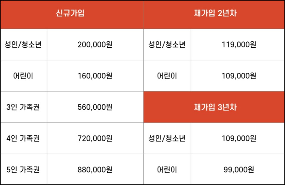 연간회원 재가입은 기존 연간회원 만기기간 이후 6개월 이내까지만 적용되므로 참고하시기 바랍니다.