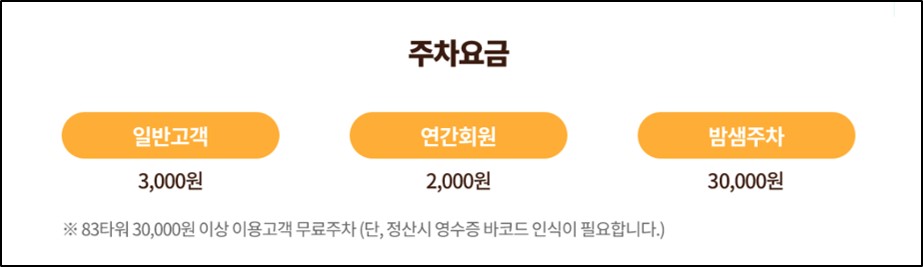 주차는 이월드 정문 드롭탑 맞은편, 83타워 1층 주차장을 이용하시면 되며, 이월드 주차장 안내 페이지에서 자세한 정보를 확인할 수 있습니다. 주차 요금은 회원권이 없는 일반 방문객의 경우 3,000원입니다.